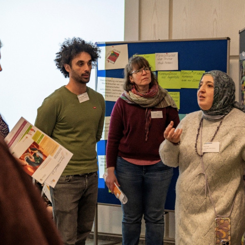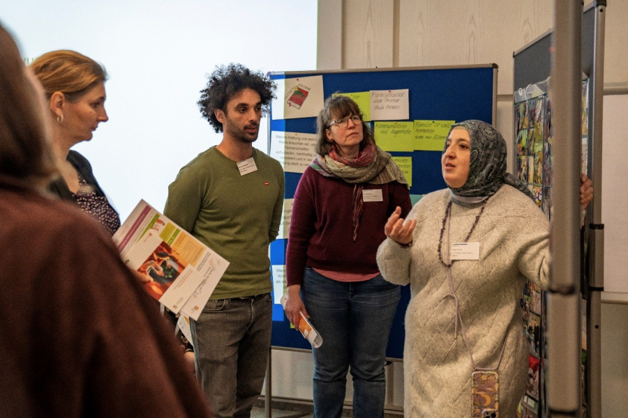 Ein zentrales Element der Konferenz war das Themencafé, in dem unter anderem der Frage nachgegangen wurde, welche Haltung es braucht, um die Zusammenarbeit mit Familien zu intensivieren. Expert*innen aus verschiedenen Bildungsbereichen brachten dazu ihre Erfahrungen und Perspektiven ein. Die vorgestellten Praxisbeispiele für die Zusammenarbeit zwischen Bildungsinstitutionen und Familien reichten von niedrigschwelligen Angeboten wie Elterncafés bis hin zu verbindlichen Beteiligungsgremien. Zudem wurde erörtert, welche Gelingensbedingungen erforderlich sind, um Bildung ganzheitlich und lebensnah zu gestalten.