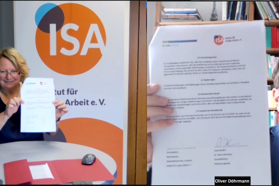 Am 22. Juni haben Ilona Heuchel, Geschäftsführender Vorstand des Instituts für soziale Arbeit e.V. (ISA), und Oliver Döhrmann, Geschäftsführer der RuhrFutur gGmbH, per Videokonferenz eine Kooperationsvereinbarung unterschrieben. Ihr gemeinsames Ziel ist es, den Wissens- und Erfahrungsaustausch bei der Weiterentwicklung des kommunalen Bildungsmonitorings zu forcieren. Aktueller Anlass ist, dass das „Netzwerkbüro Bildung im Strukturwandel“ gefördert durch das BMBF und in der Trägerschaft des ISA ein regionales Bildungsmonitoring im Rheinischen Braunkohlerevier aufbaut.