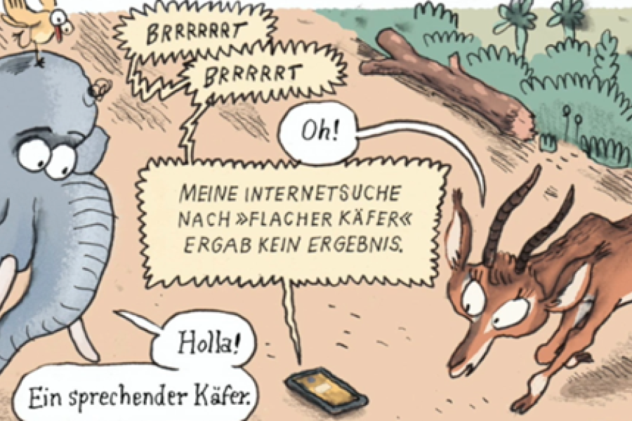 Martin Baltscheit hat aus seinem neuen Kindercomic „Herr Elefant & Frau Grau gehen in die große Stadt“ gelesen. Das unterhaltsame Tierabenteuer hat er gemeinsam mit Max Fiedler im Kibitz Verlag (2021) publiziert.